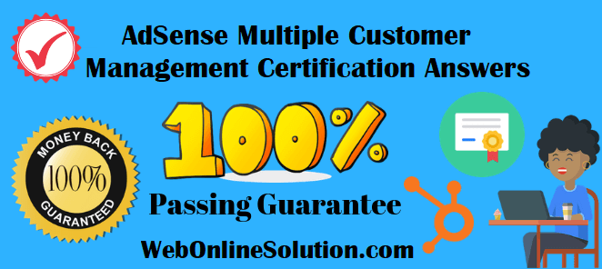 Get AdSense Multiple Customer Management Certification Exam Answers (Updated) and Become an AdSense Multiple Customer Management Certified Expert. Using this answer sheet, you will pass the AdSense Multiple Customer Management Exam.